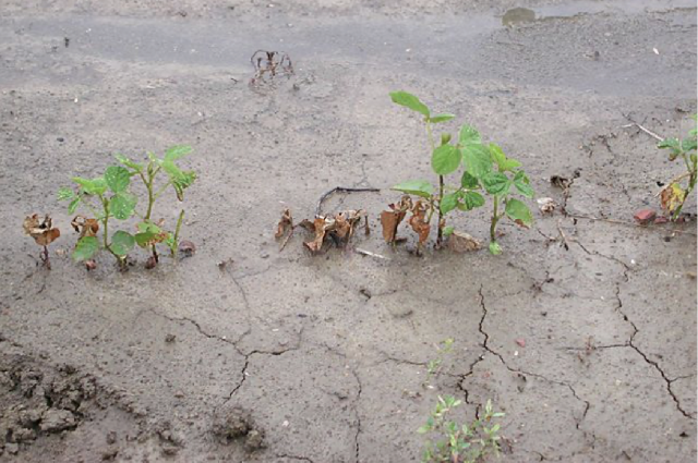 Population rates and plant spacing are not as critical for soybeans as they are for corn due to the ability of the soybean plant to branch out and fill open space in the crop canopy. In other words, a few missing soybean plants here and there do not affect the crop yield potential. It is generally accepted that a uniform stand count of 100,000 plants per acre or more will not warrant replanting. The key word here is “uniform”. A spotty stand of 100,000 plants per acre most likely will require planting.